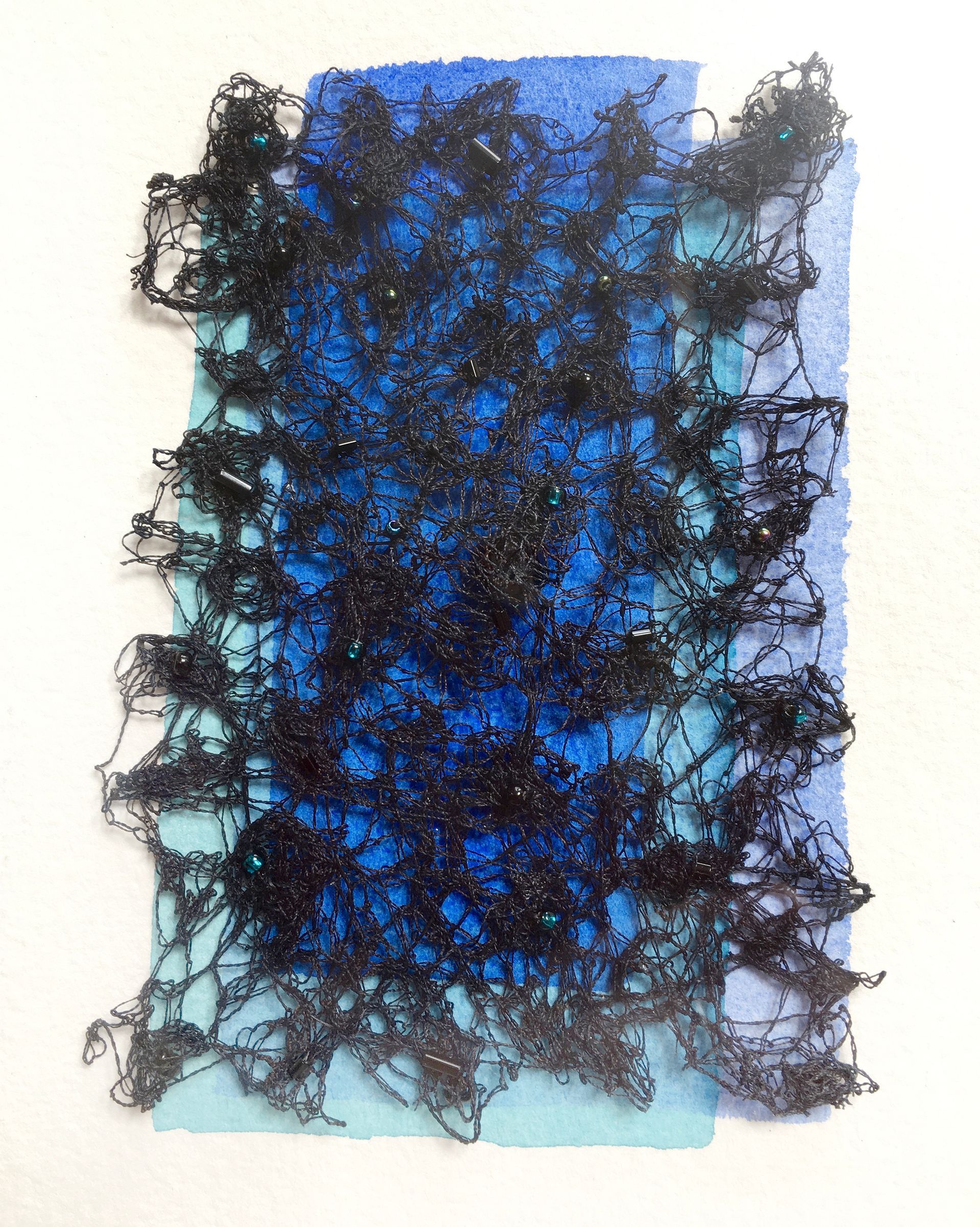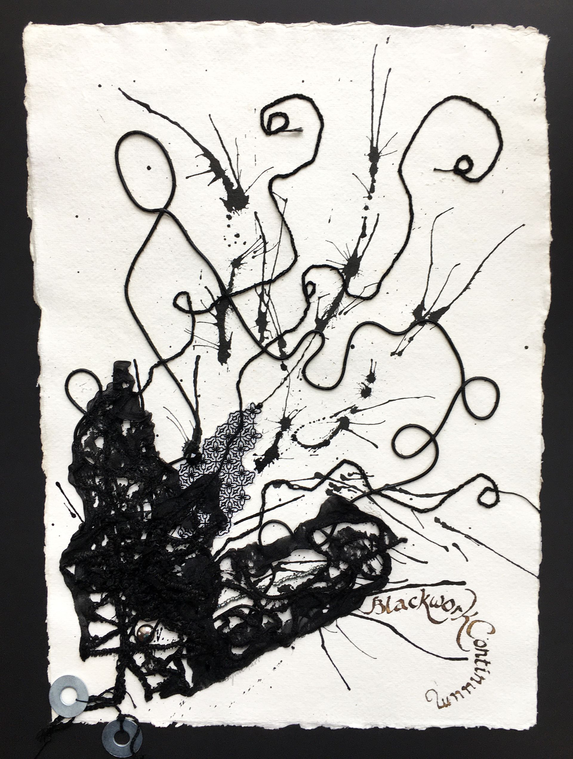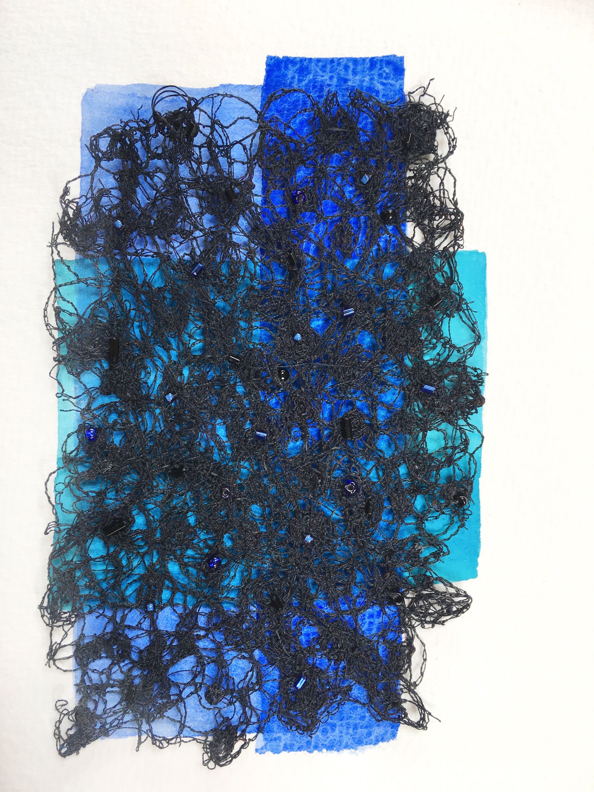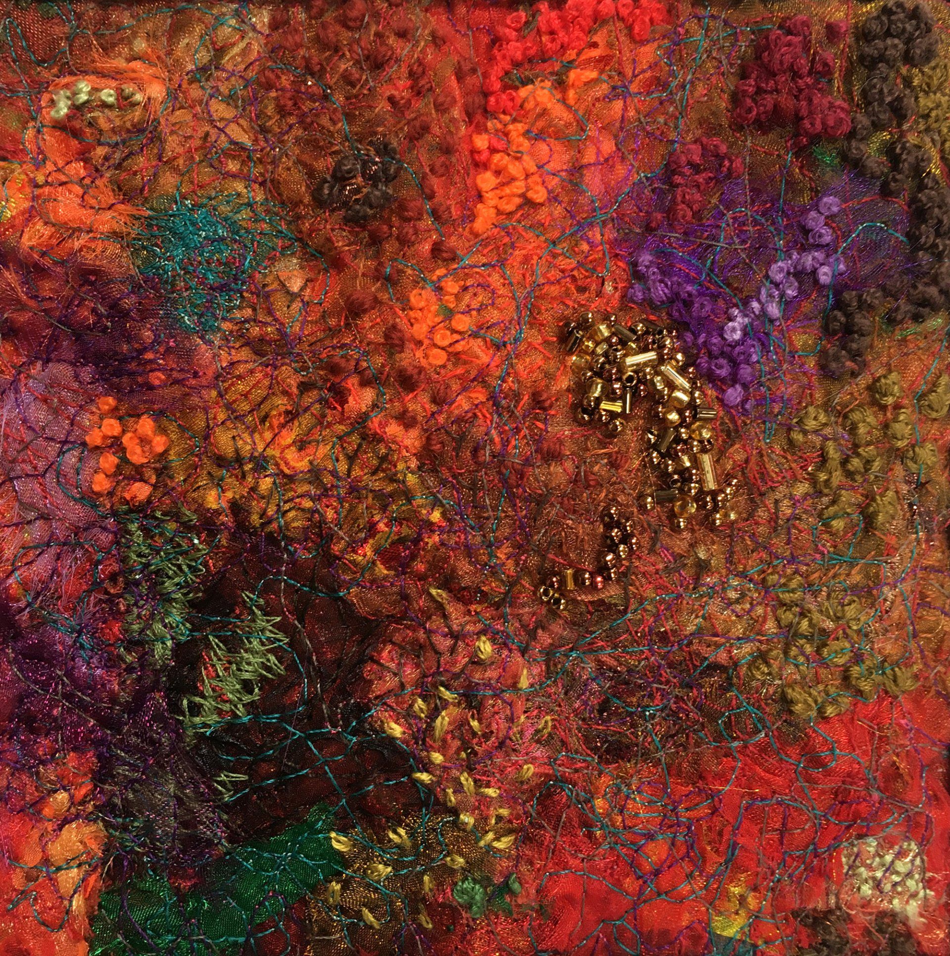 These unique artworks are created from many layers of painting, calligraphy, drawing, hand and machine embroidery, beading, appliqué and collage. Click on an image to see details and more information about each piece. Sizes include frames.