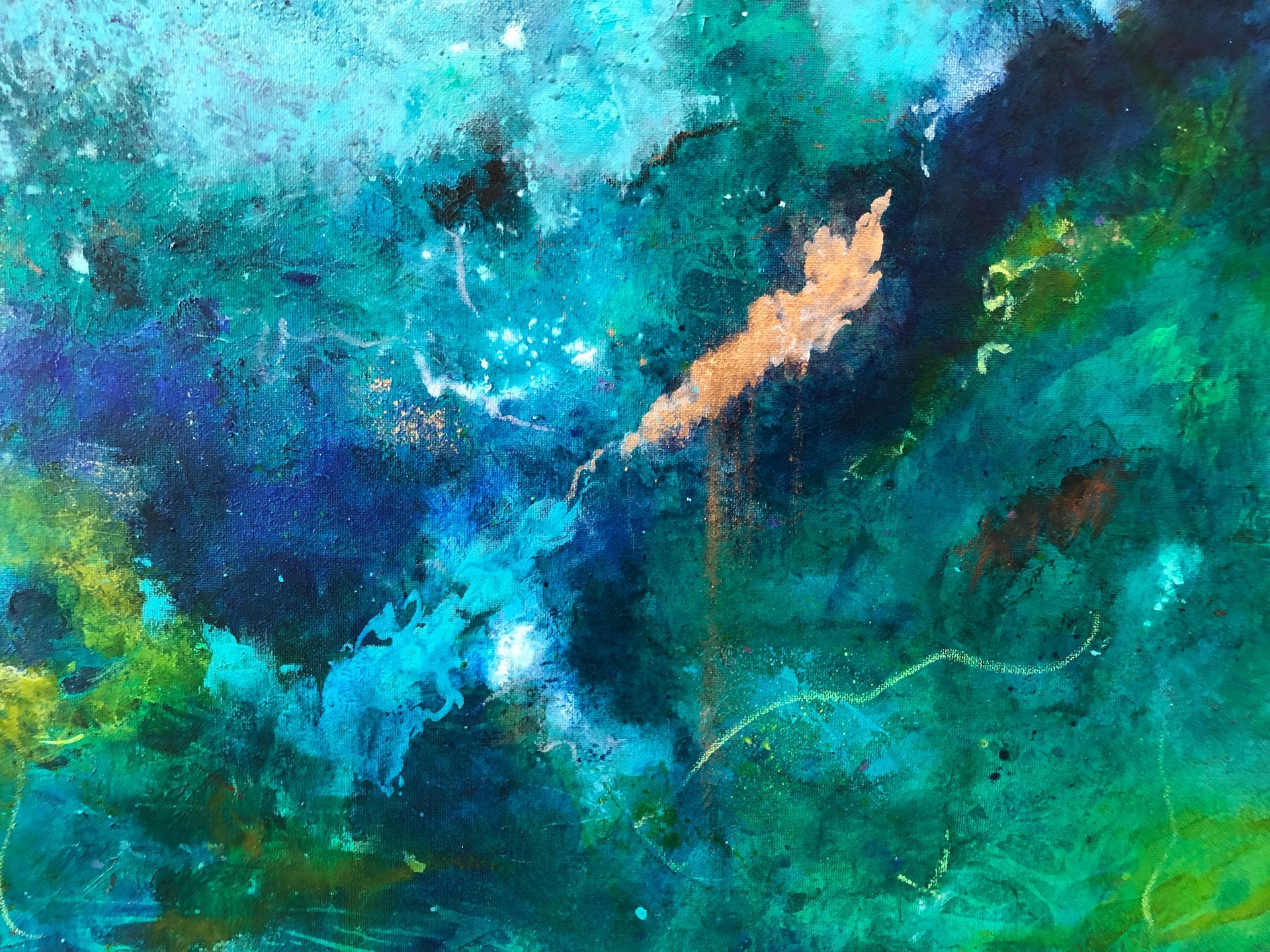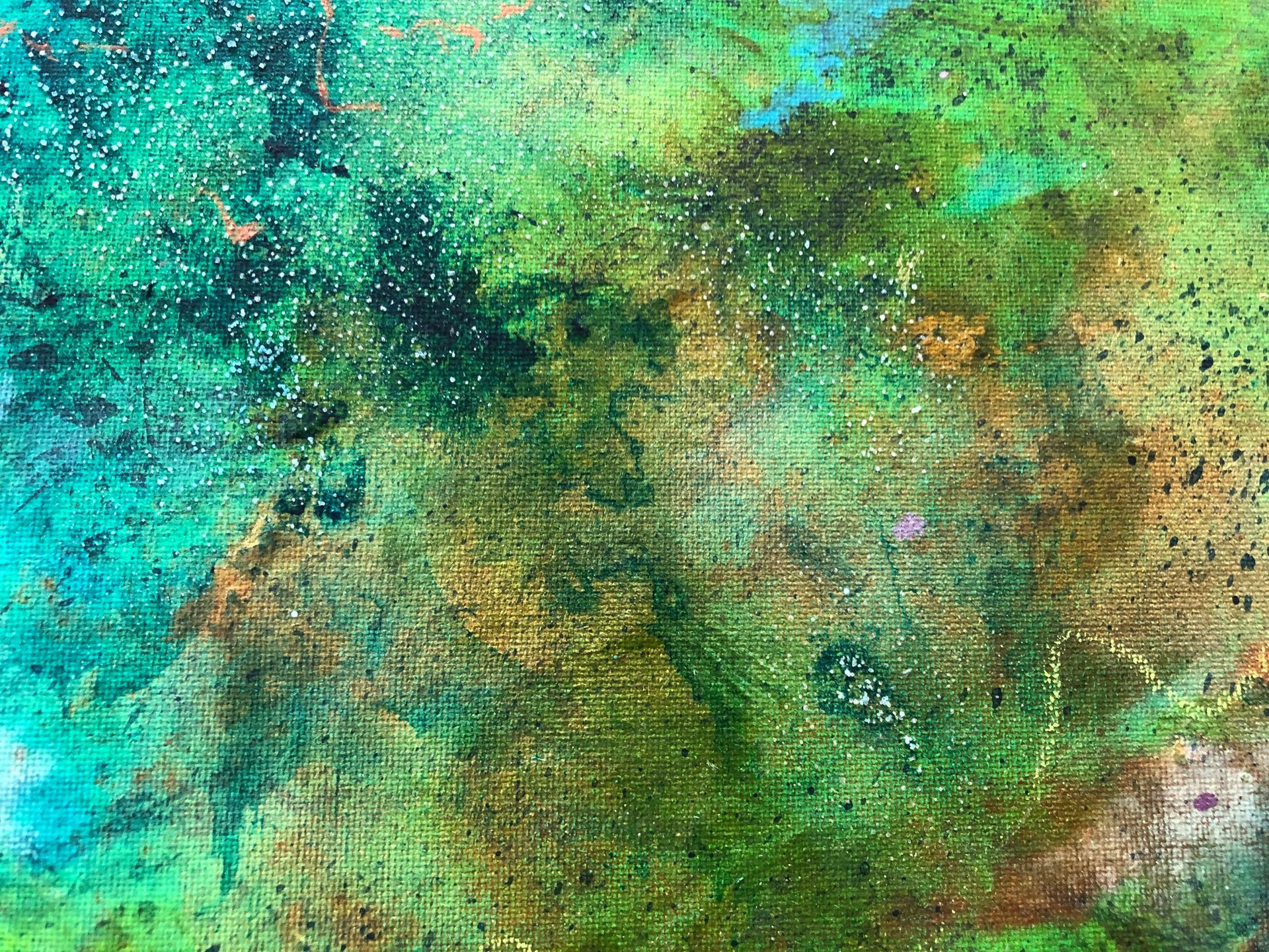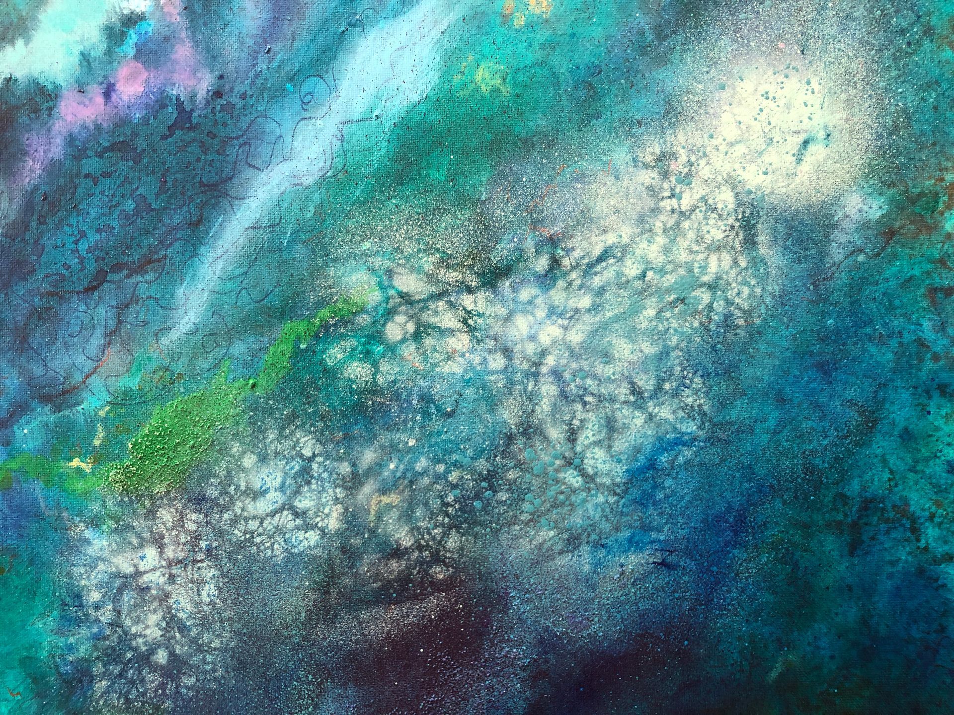 Mixed media (acrylic, metallic pigments, ink, oil pastel) on canvas