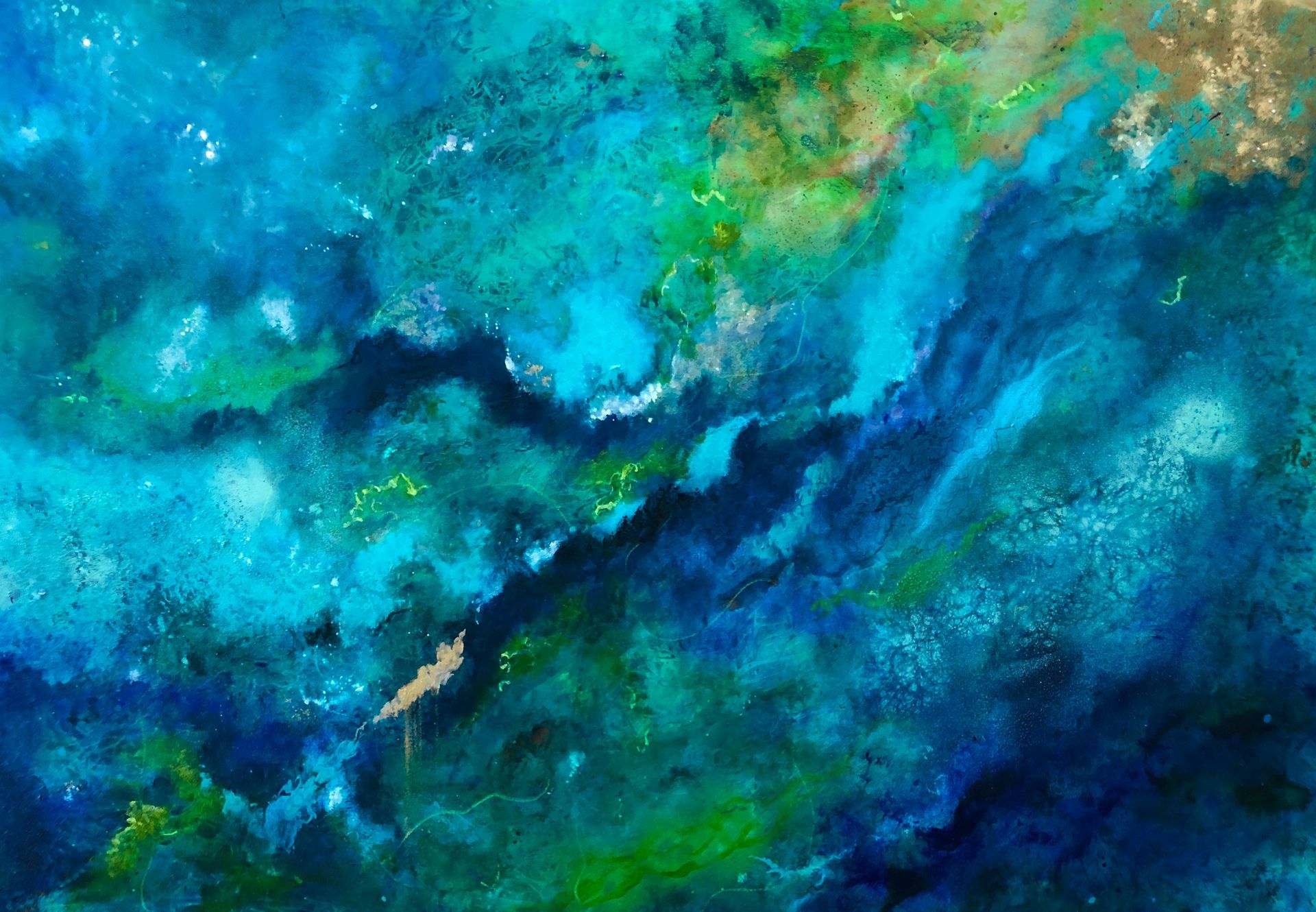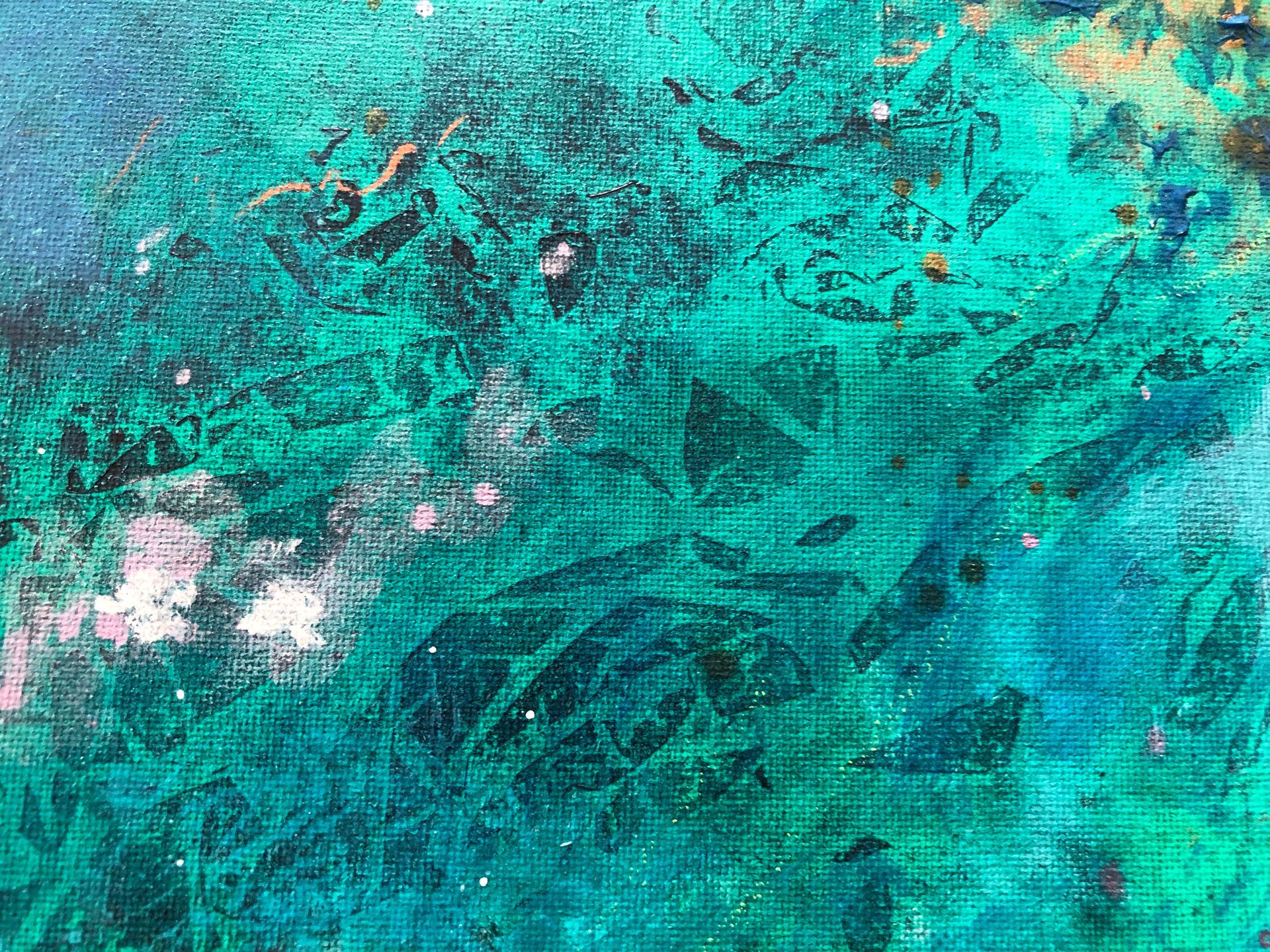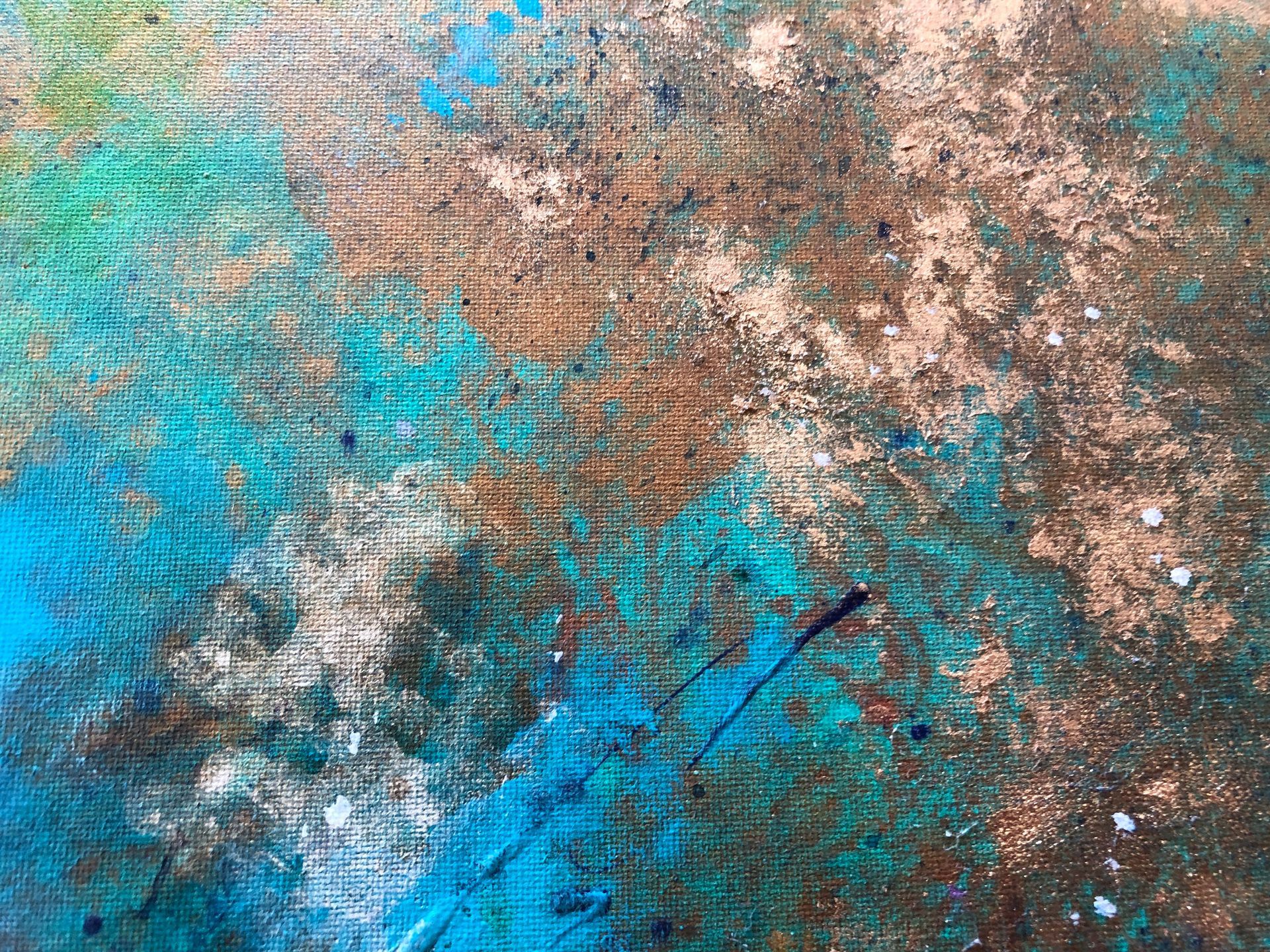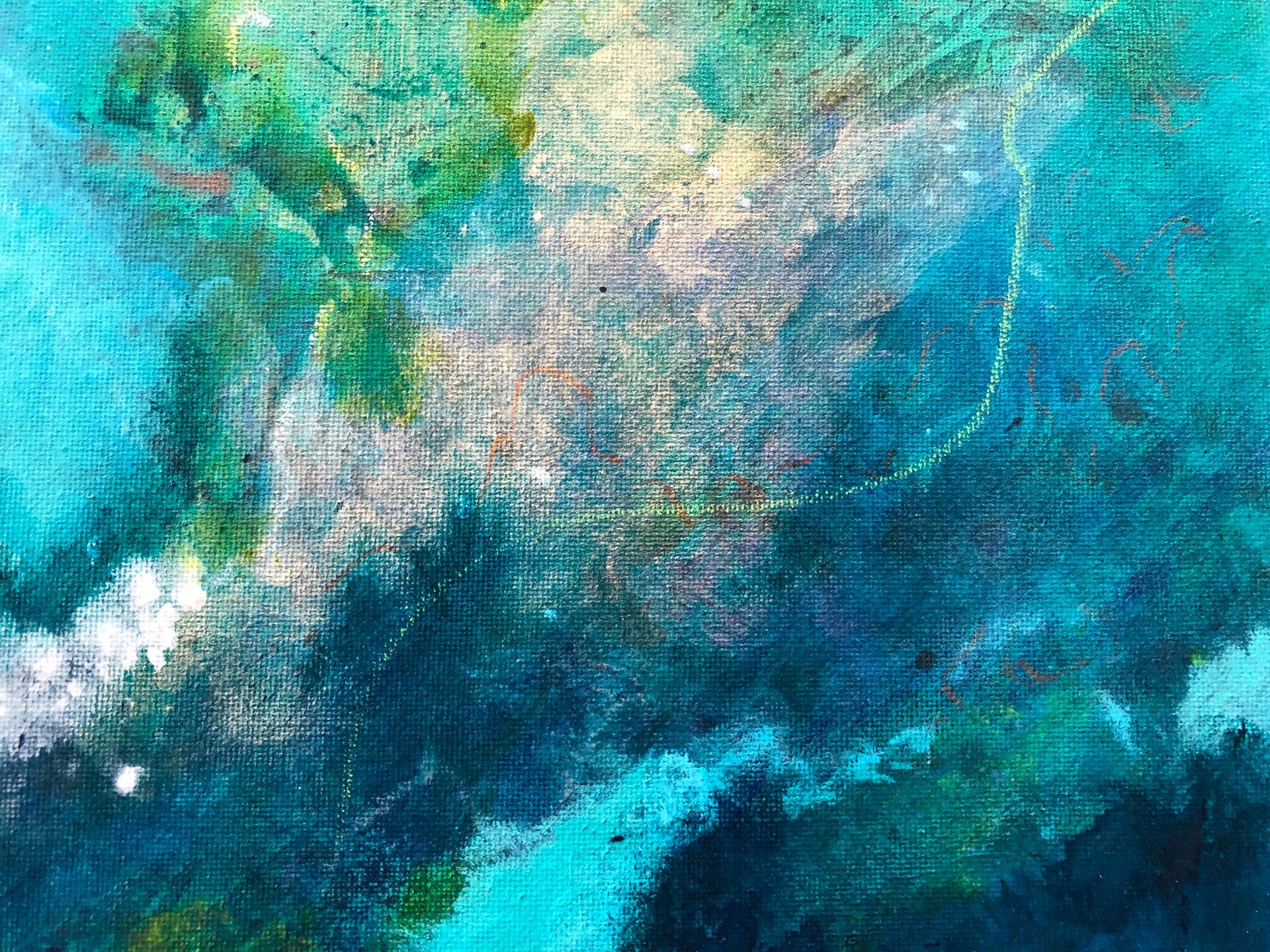 Mixed media (acrylic, metallic pigments, ink, oil pastel) on canvas