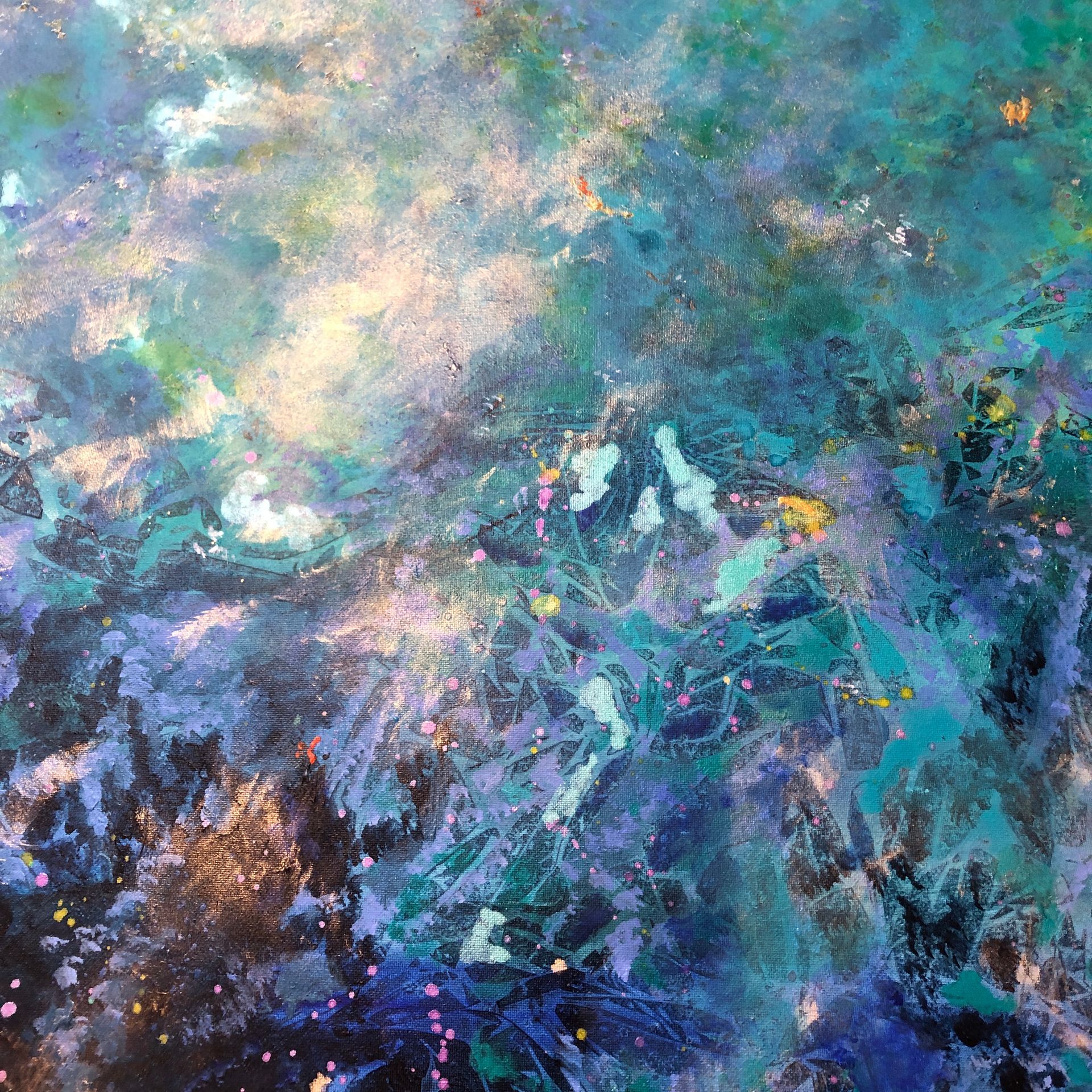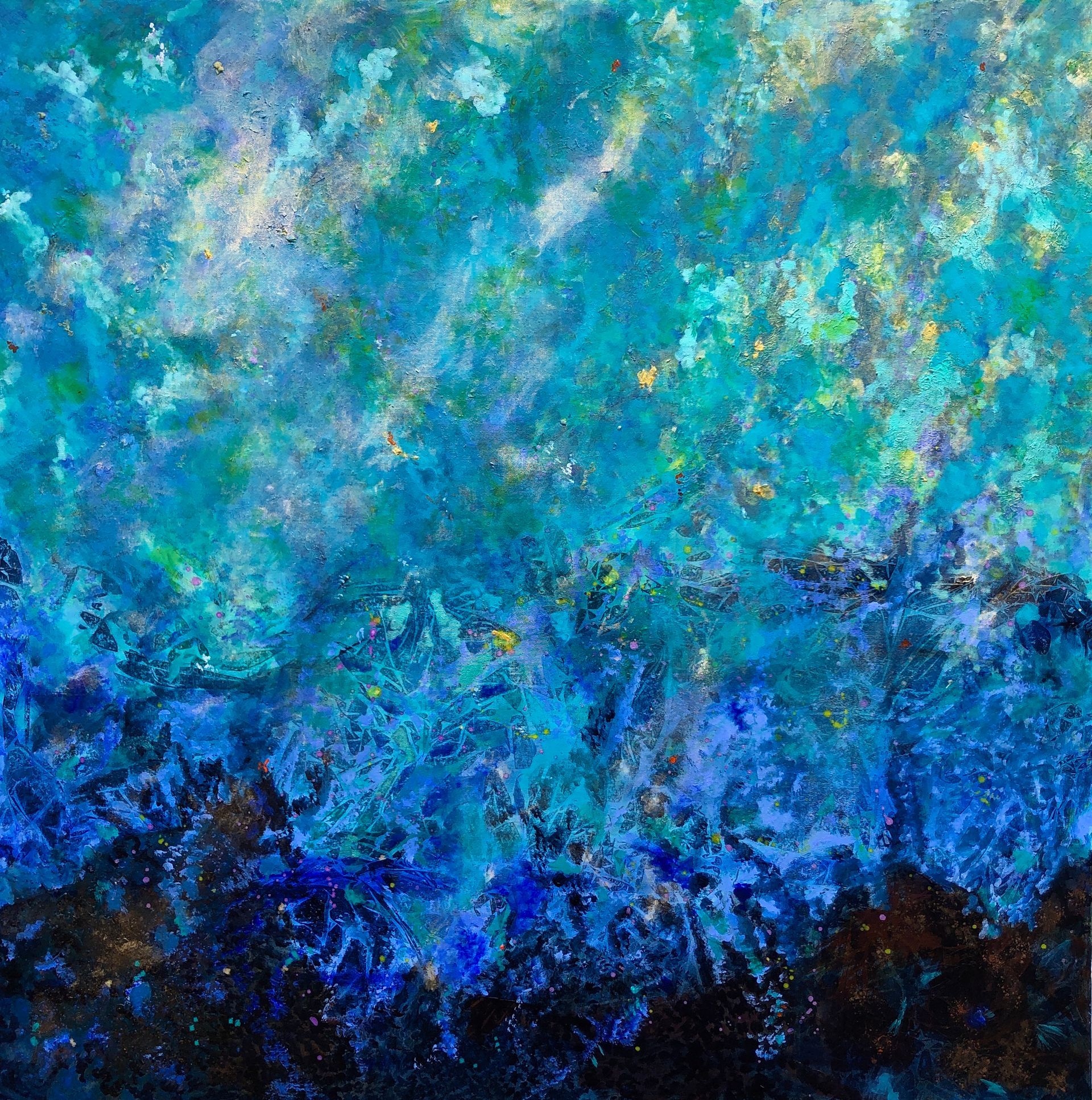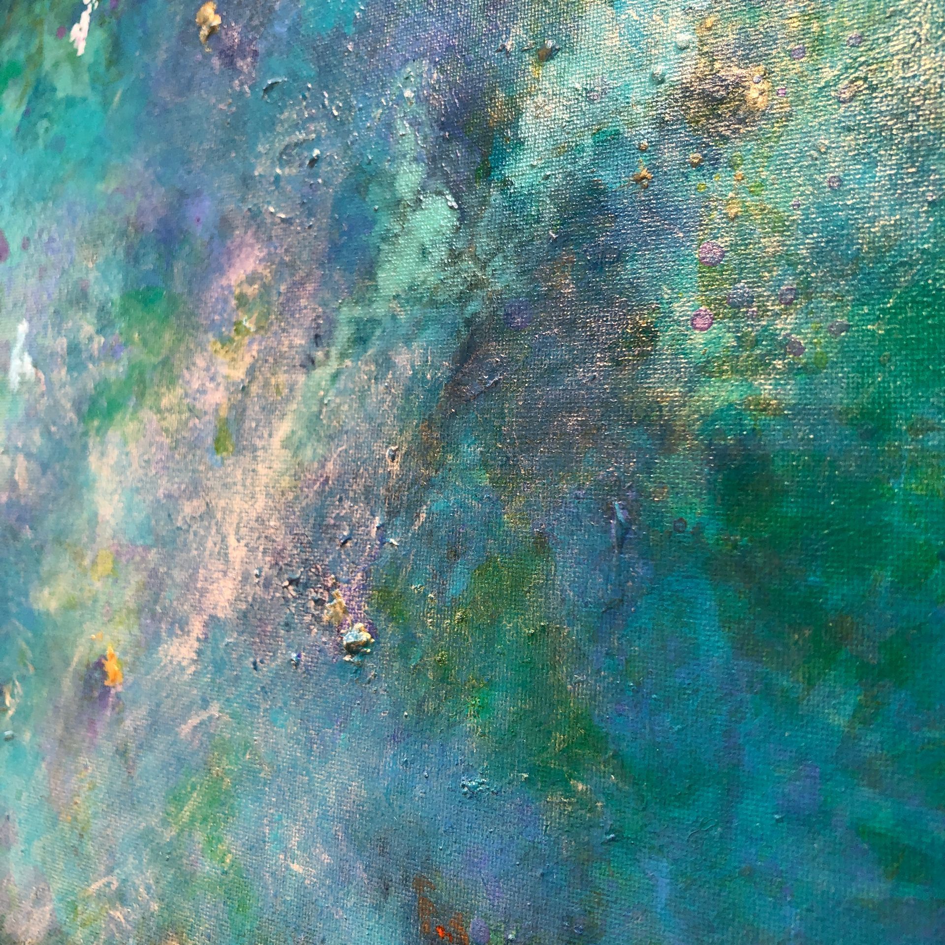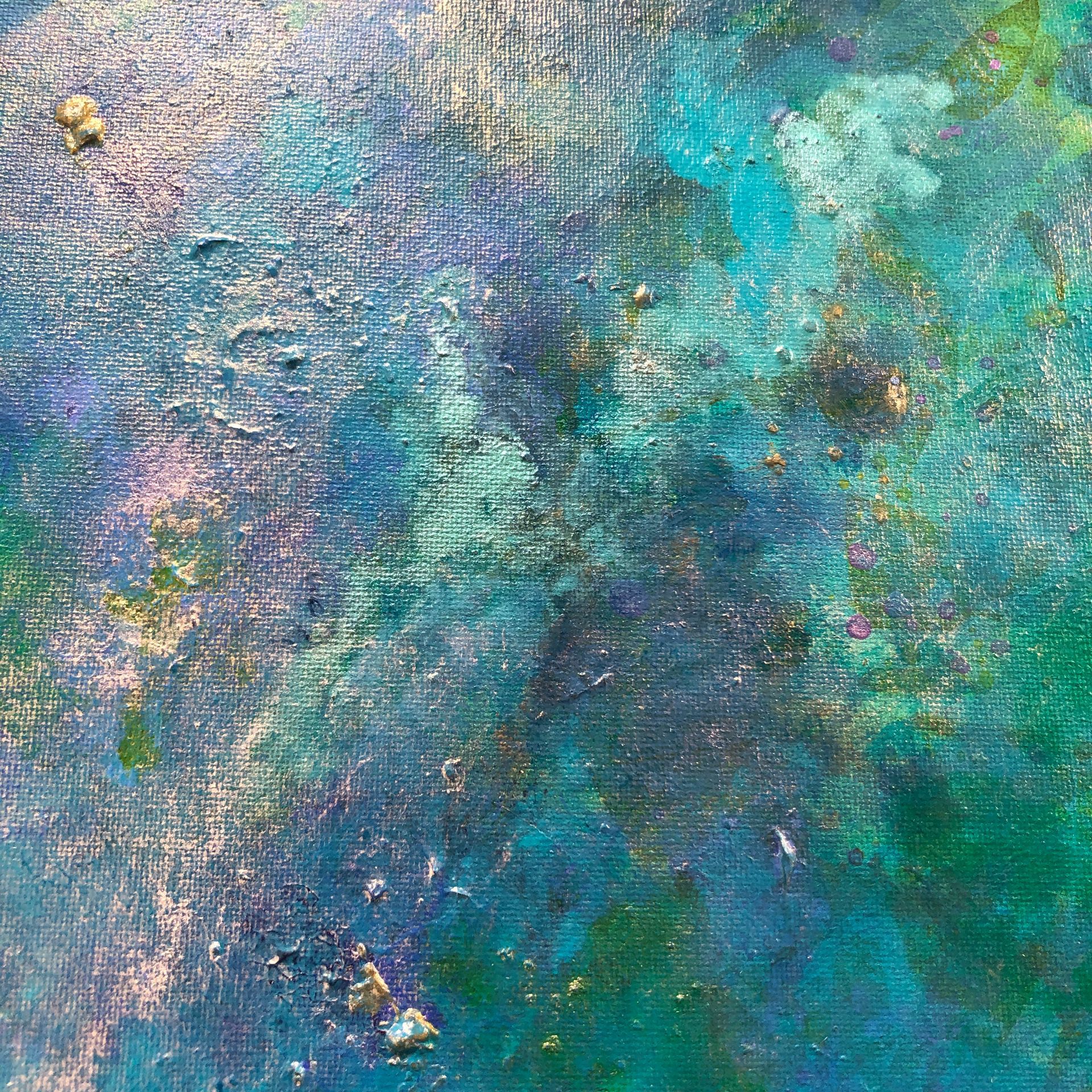 Mixed media on canvas (acrylic, pastel, ink, metallic pigments, bronze powder)