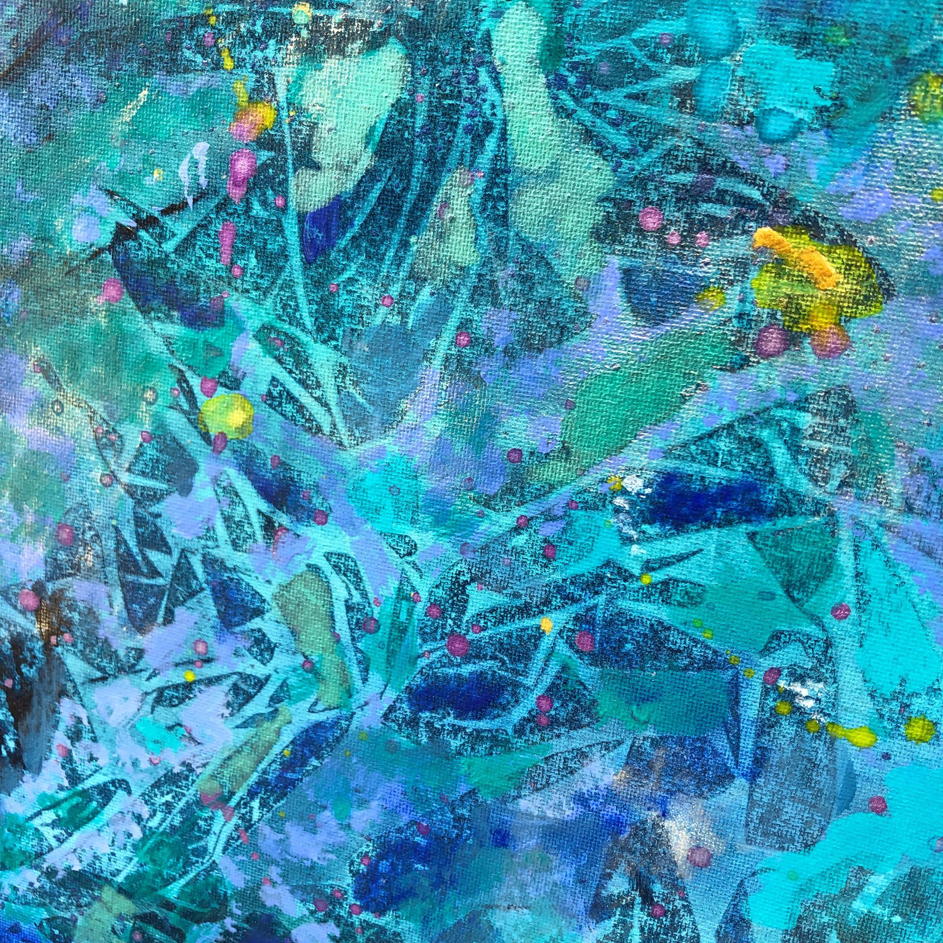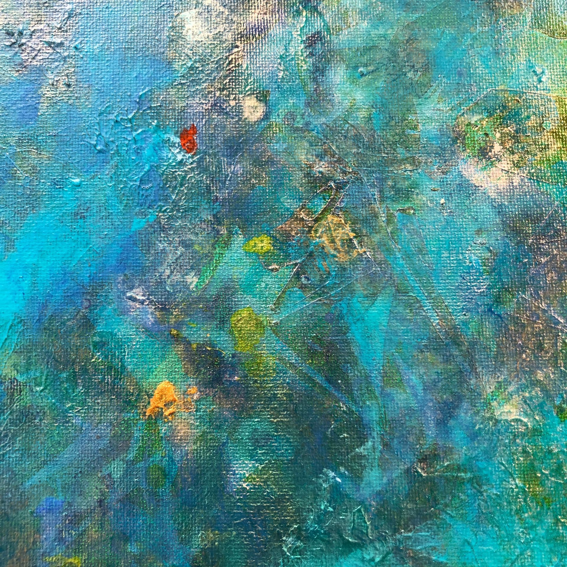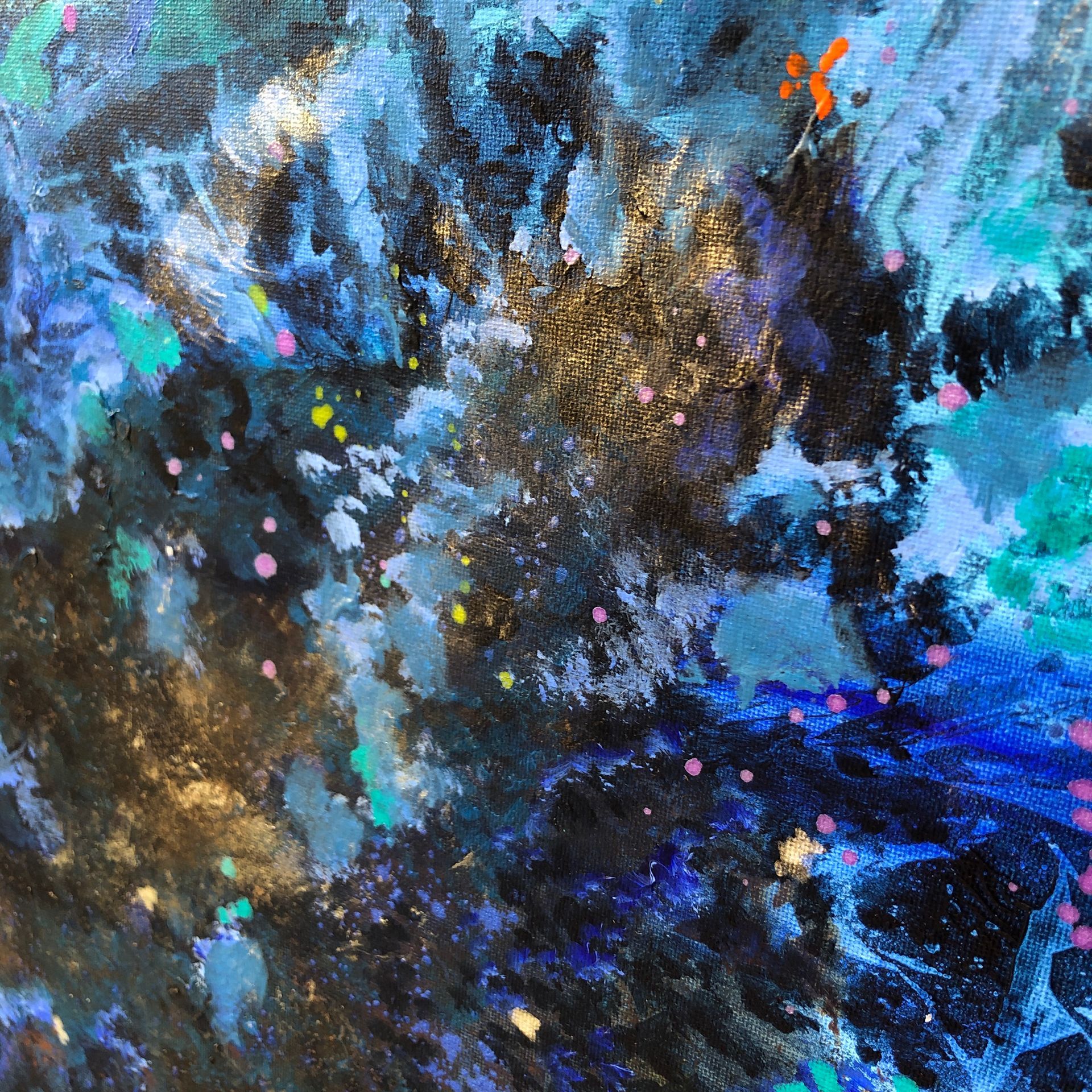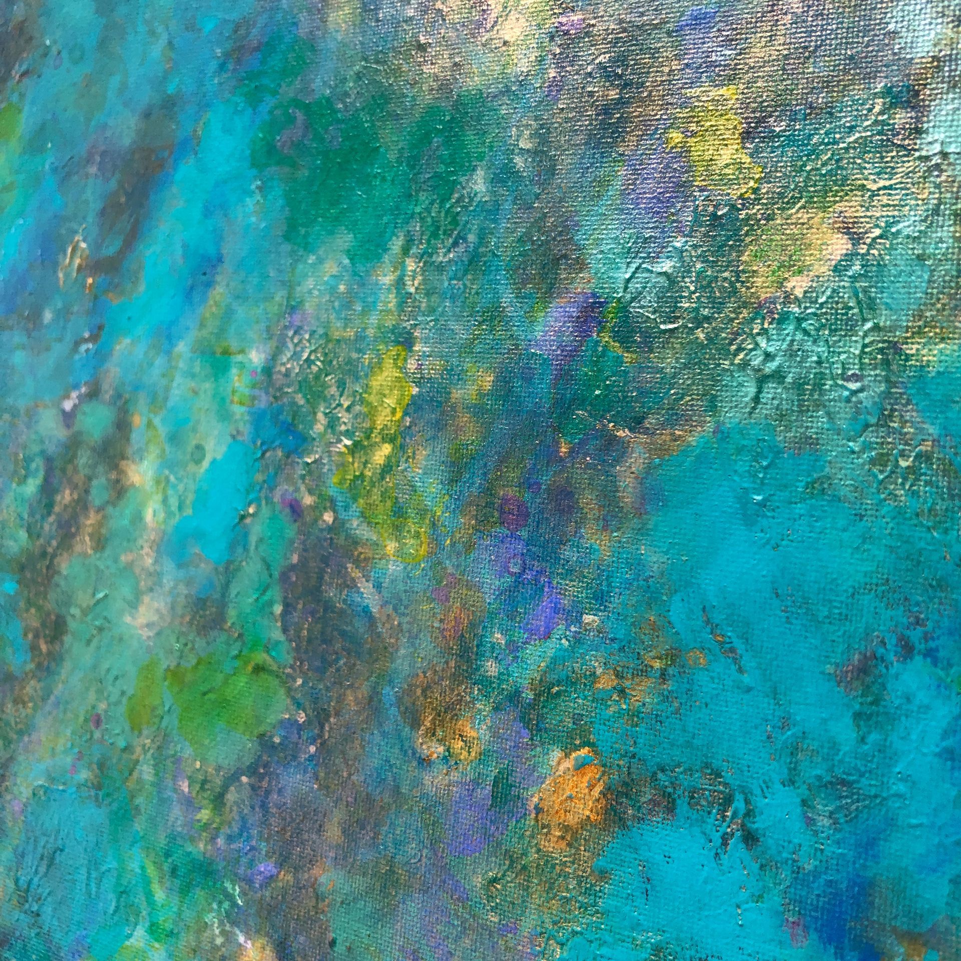 Mixed media on canvas (acrylic, pastel, ink, metallic pigments, bronze powder)